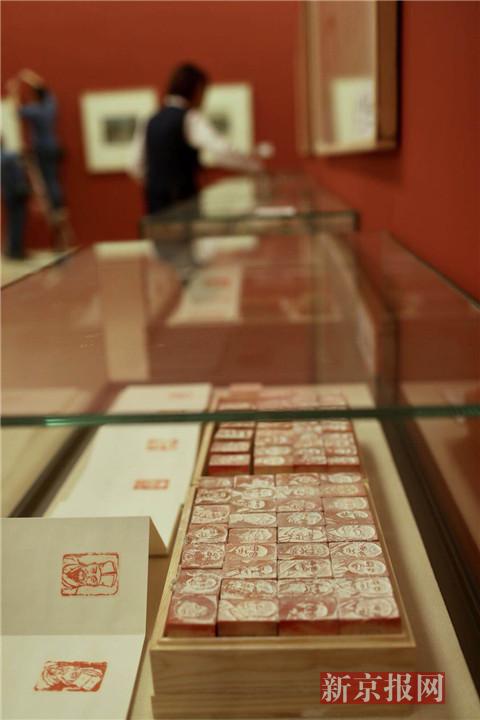 现场展出的名人肖像木印。